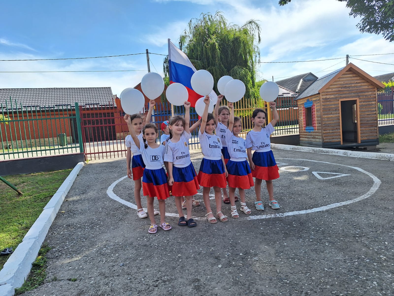 Всюду флаги и цветы.