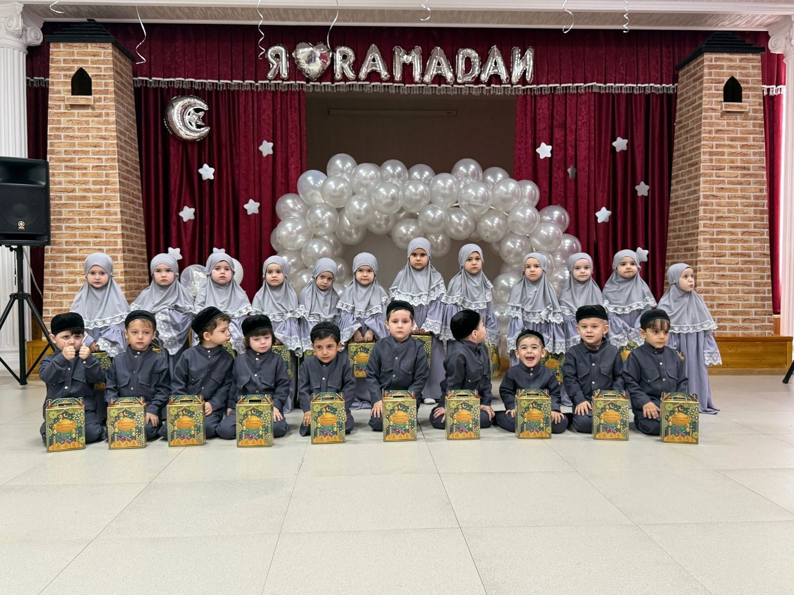 Дети с трепетом и уважением подошли к участию в этом событии: нарядная форма, дисциплина, внимание к каждому моменту - все подчеркивало торжественность и значимость праздника. Воспитатели подготовили красивое оформление зала, украсили сцену воздушными шарами и тематическими элементами, создав атмосферу уюта и тепла.